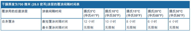 -敬請參閱補充參數(shù) - 覆涂間隔時間表。