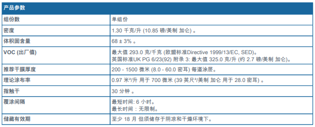 備注: 刷涂施工時的最大干膜厚度: 300 微米 (12.0 密耳) 。