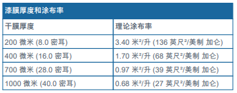 -敬請參閱補充數(shù)據(jù)表 - 理論涂布率與干膜厚度對照關(guān)系表。