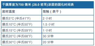 備注: 涂層干燥時間可能隨著環(huán)境條件、工件截面的A/V m-1 (Hp/A) 和實際漆膜厚度的不同而發(fā)生變化。