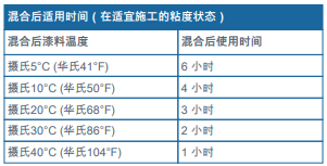 ?在涂裝施工和涂層固化過程中應(yīng)確保底材溫度高于攝氏 5°C (華氏41°F)。