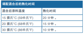 ?涂裝前最好應(yīng)將各組份或混合后的漆料溫度調(diào)控到攝氏15°C (華氏59°F)以上, 不然則可能需要添加稀釋劑,以便將漆料粘度調(diào)整到適合施工的粘稠狀態(tài)。