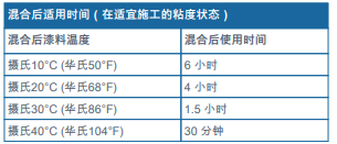 -涂層可踩踏干時(shí)間也就是漆膜達(dá)到硬干狀態(tài)的最短覆涂間隔時(shí)間,這樣可防止涂層受損。